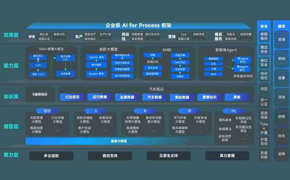 端到端的一站式AI工作空间深度融合了从企业战略规划到日常经营的全流程业务板块,,,,定向解决车企内部领域多、、、部门多、、、链条长、、、、场景碎片化等难题,,支持车企快速构建以AI为核心的生产力写作体系,,实现任务执行与AI能力的无缝集成与交互